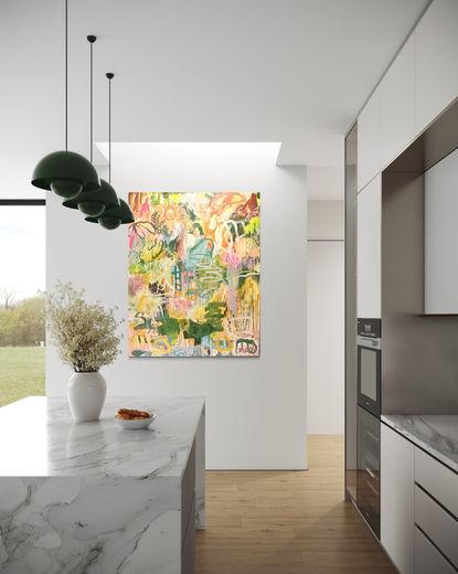 I paint from intuition. Sometimes I don’t know what the piece wants to say at first, but as the layers build, shapes, memories, and emotions start to appear. This work is about that quiet magic we don’t always see, but that has been there all along—waiting to be revealed.